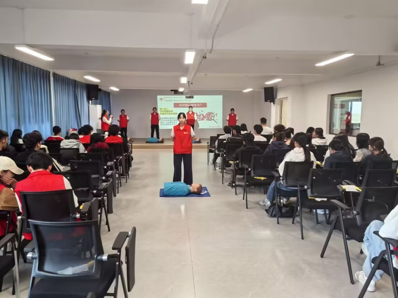 活动伊始,红十字会志愿者为在场师生开展了系统、实用的应急救护技能培训,分步演示与现场实操指导,重点讲解了心肺复苏、成人海姆立克急救法及婴儿海姆立克急救法的关键步骤与操作要领。随后,志愿者结合医学专业知识,系统介绍了艾滋病的发病机制、传播途径、临床症状以及科学预防措施,并现场演示了安全套的正确使用方法,引导广大师生树立正确的健康观念,增强防病意识和自我保护能力。