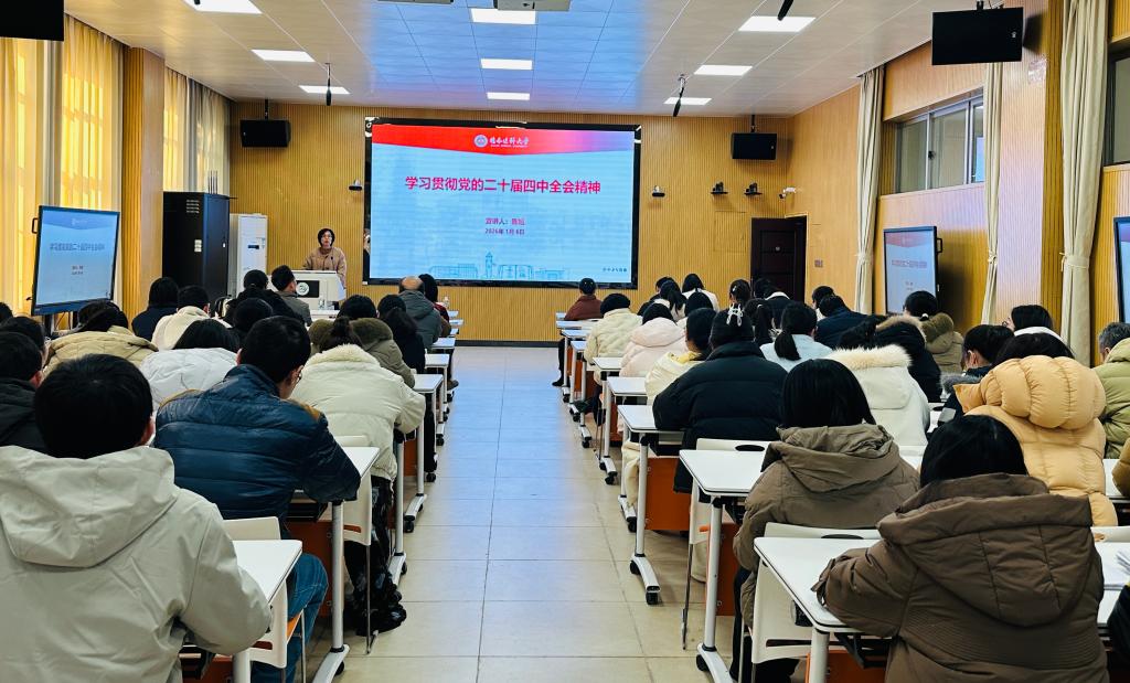 1月6日下午,学习贯彻党的二十届四中全会精神桂林医科大学宣讲报告会(药学院专场)在弘博楼2108教室举行。校党委副书记陈旭作专题宣讲,药学院党政领导班子成员、全体师生党员及党外教师代表参会。报告会由药学院党委副书记、纪委书记梁金妹主持。