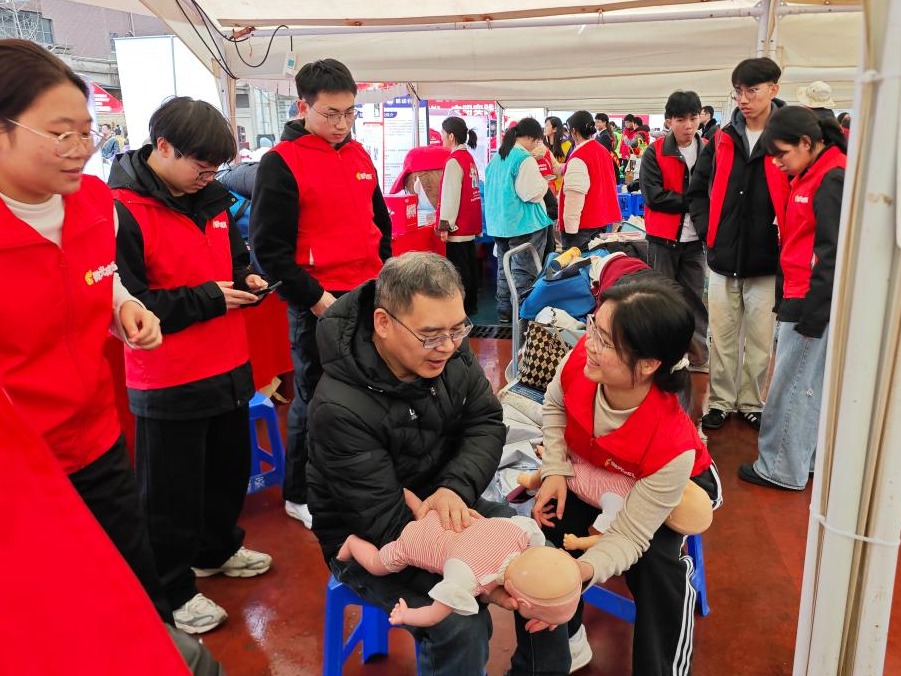 活动现场,各参展单位通过实物陈列、现场演示、互动体验等多种形式,全面展示志愿服务品牌项目、特色活动及工作成果。我校红十字会“微光成炬”生命教育宣讲团志愿者联合国际教育学院留学生志愿者通过“模拟池塘”防溺水教育、应急救护宣讲等形式,向现场市民向现场群众讲解防溺水常识、自救互救技巧。生动的现场演示吸引了不少市民参与,在志愿者指导下开展模拟演练,现场互动氛围热烈。