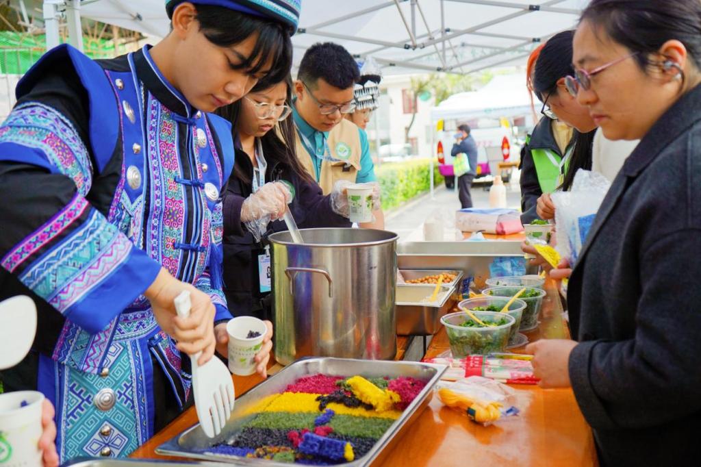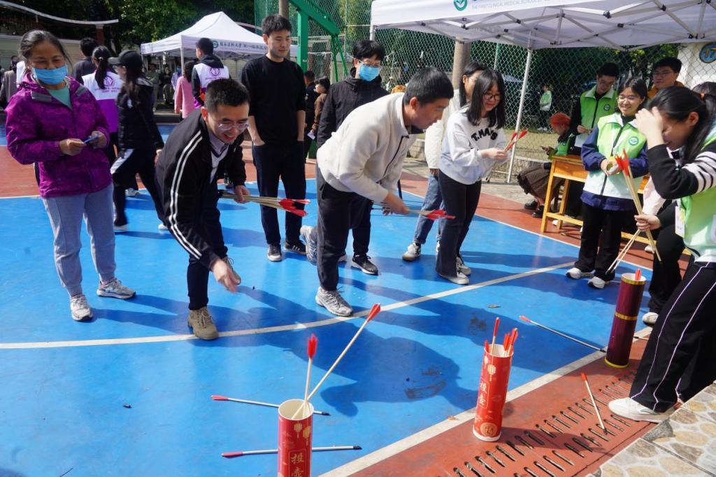 本次游园活动内容丰富、特色鲜明,全方位展现了壮乡文化的独特魅力,吸引了全校1500余名师生共同参与。活动现场还准备了五色糯米饭、恭城油茶、板栗肉粽、艾叶粑等壮乡特色美食,让师生们在品尝美味的同时,沉浸式体验壮乡风情、体悟民族文化。