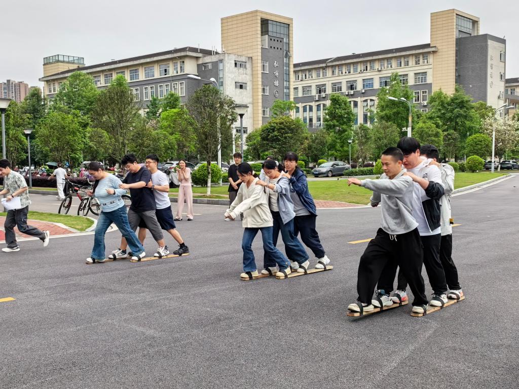 游园活动设置民族知识问答、投壶、壮锦书签制作、特色打卡四大互动模块。同学们深入了解“广西三月三”历史与民族非遗文化,亲手制作壮乡特色书签,并踊跃打卡拍照分享。随后开展的特色运动会将活动氛围推向高潮,各学院代表队在板鞋竞速、背篓接绣球、“蚂拐捉害虫”等项目中展开角逐,既展现了体育竞技的拼搏精神,也彰显了壮乡文化的独特魅力。现场加油声、欢笑声此起彼伏,同学们在协作中拉近了距离,在竞技中收获了友谊。