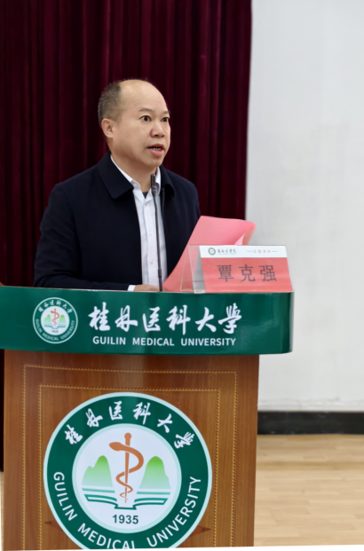 会上校党委常委、副校长覃克强代表学校致辞,向全体毕业生致以诚挚的祝贺,向辛勤耕耘在教学一线的教职工表示衷心感谢。他指出作为学校2025年更名后的首届继续教育毕业生,学子们是学校发展的见证者与医学教育的先行者,并对毕业生提出三点期许:一是做医学创新的开拓者,深耕临床与科技融合;二是做人文医疗的践行者,以仁心守护生命尊严;三是做终身学习的示范者,以空杯心态适配行业发展。