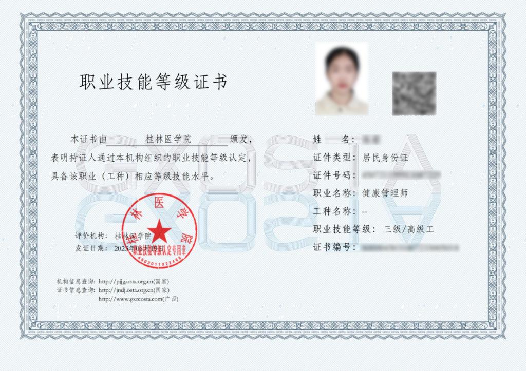 可登录“广西技能人才评价工作网”(gxrcosta.com)查询。证明持有人具备从事该领域特定工作活动的必备能力 。 |