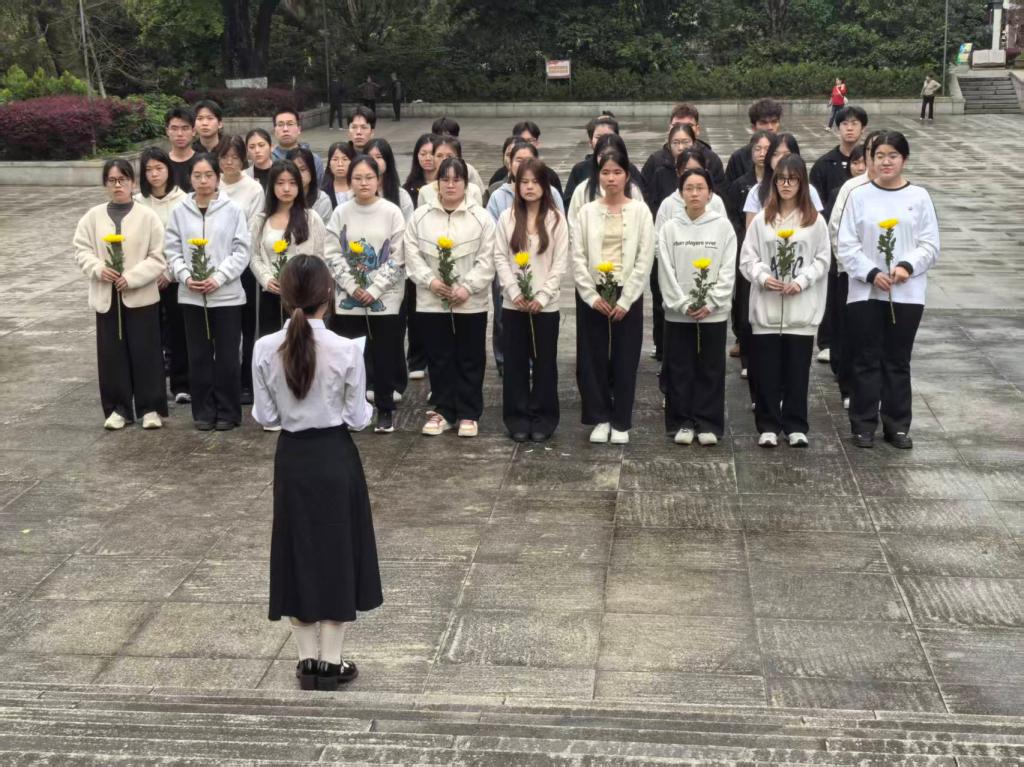 祭扫仪式在庄严的国歌声中正式开始。全体同学肃立默哀,向为民族解放和国家富强英勇献身的革命先烈致以深切哀悼。现场,同学们聆听先烈事迹,感悟不朽精神。伴随着深情的《献花曲》,大家依次向烈士纪念碑敬献鲜花并行三鞠躬礼,表达对英烈的崇高敬意与无限追思。
