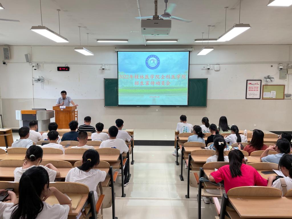 为了进一步提高生源质量,做好2022年临床医学(全科医学方向)专业的招生录取政策宣传工作,全科医学院于2022年6月12日在临桂校区教学南楼103教室召开2022年招生宣传动员大会,全科医学院党委副书记潘涛、学工办辅导员、招生宣讲团成员、学院学生干部参加此次会议。