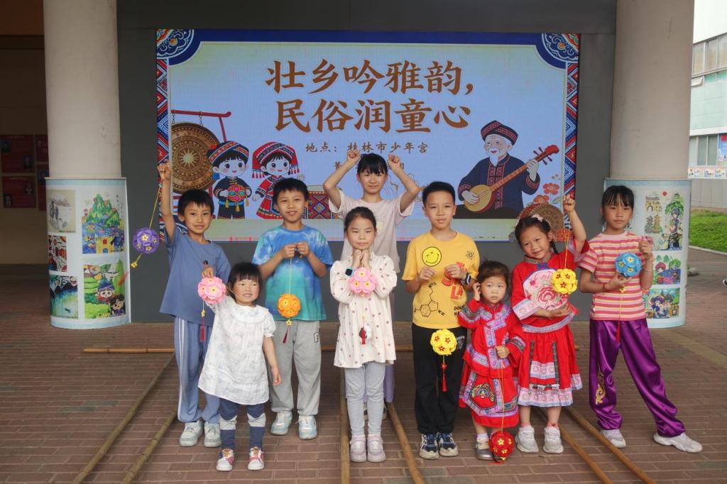 为传承和弘扬中华优秀传统文化,让青少年儿童沉浸式感受民族节日的独特魅力,2026年4月11日上午,全科医学院菁华志愿服务团走进桂林市少年宫,举办以“壮乡吟雅韵,民俗润童心”为主题的“三月三”活动。活动共吸引约1600名青少年儿童及家长参与。