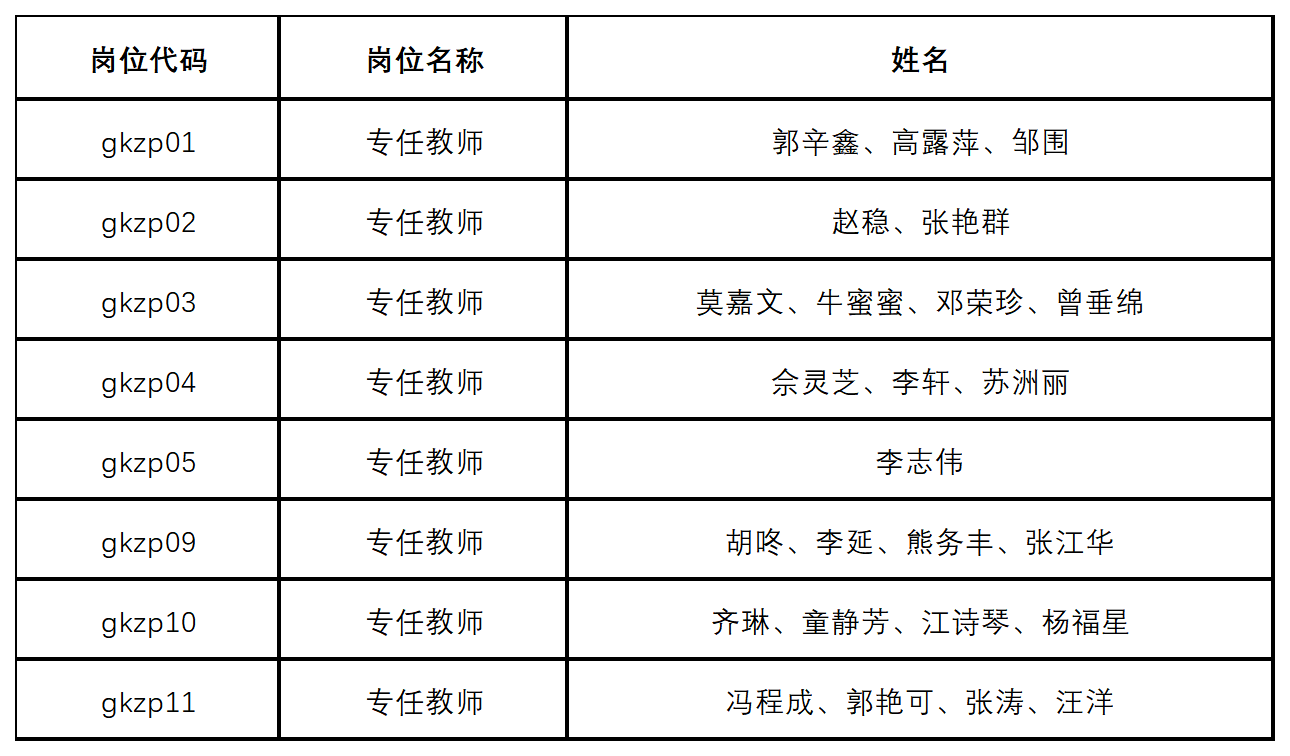 四、通过资格审查应聘人员名单