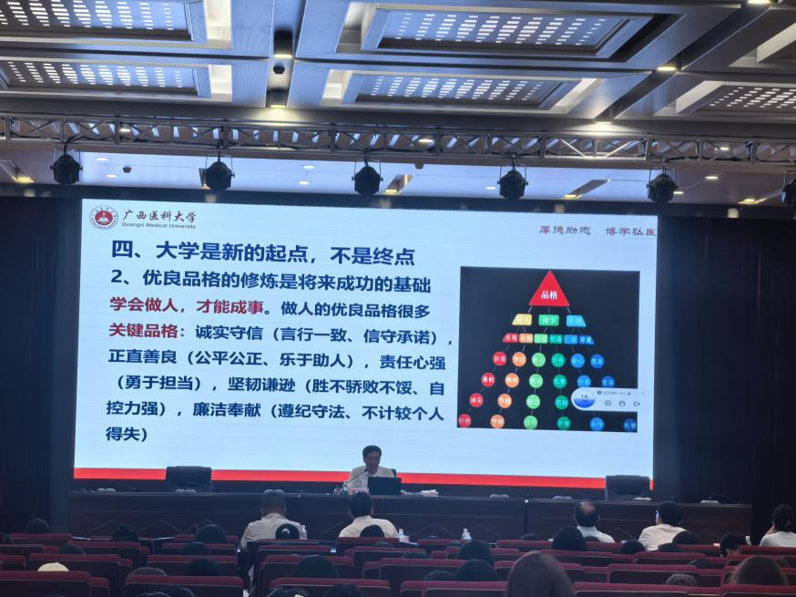 如何在医学院校里办好“新文科”,培养出既懂医学规律又富有人文情怀的卓越管理人才?面对这一时代课题,桂林医科大学人文与管理学院用一场精心策划的2025级新生入学教育作出了有力回应。9月下旬,在临桂校区教学北楼多功能报告厅,学院深刻践行学校“启学立志、五讲五育”要求,彻底摒弃模板化宣讲,构建起一套以“党建领航、大师引路、成长导航”为特色,深度融合“医学底色”与“人文特色”的入学教育体系,为新生们献上了一场有温度、有厚度、有深度的思想与学业启蒙。