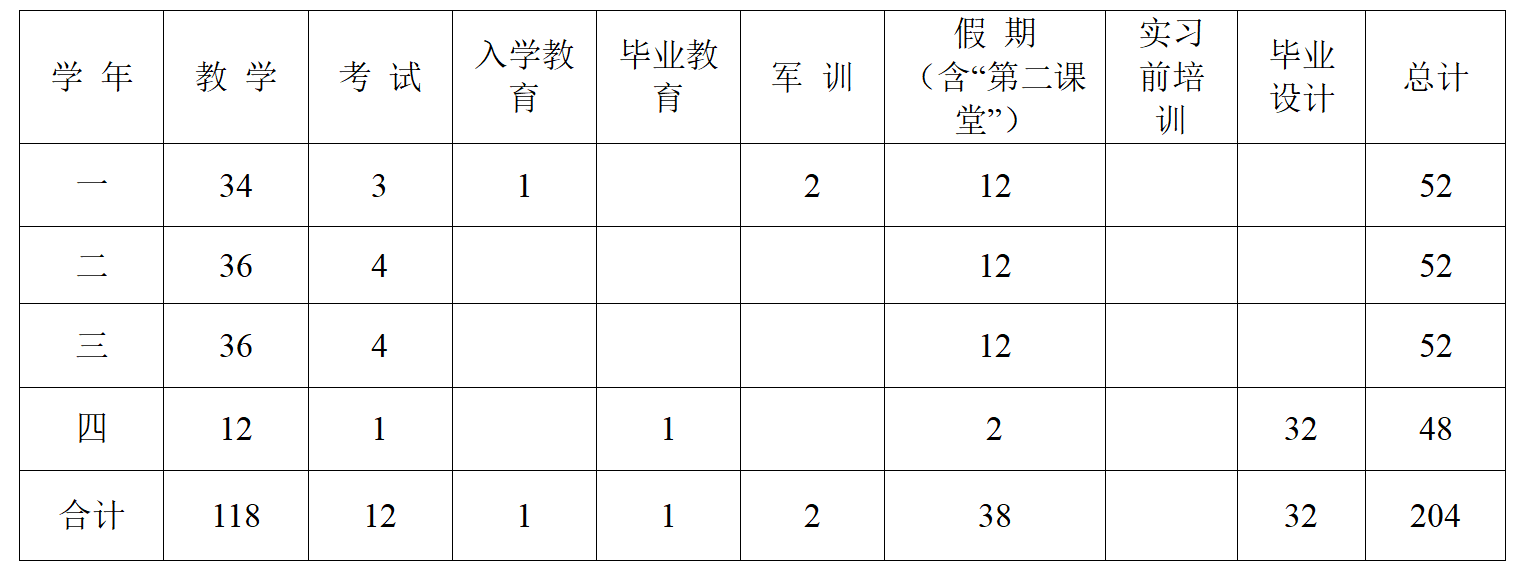 4.毕业教育:于最后一学期进行,共1周。