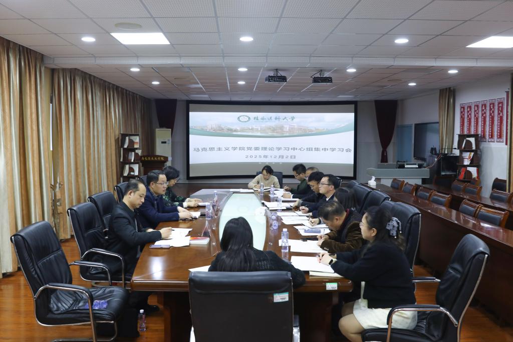 12月2日下午,马克思主义学院党委在人文楼316会议室召开党委理论学习中心组集体学习会,深入学习贯彻党的二十届四中全会精神。校党委书记马献力到会巡听旁听并作现场点评指导。会议由学校党委副书记、马克思主义学院党委书记陈旭主持。