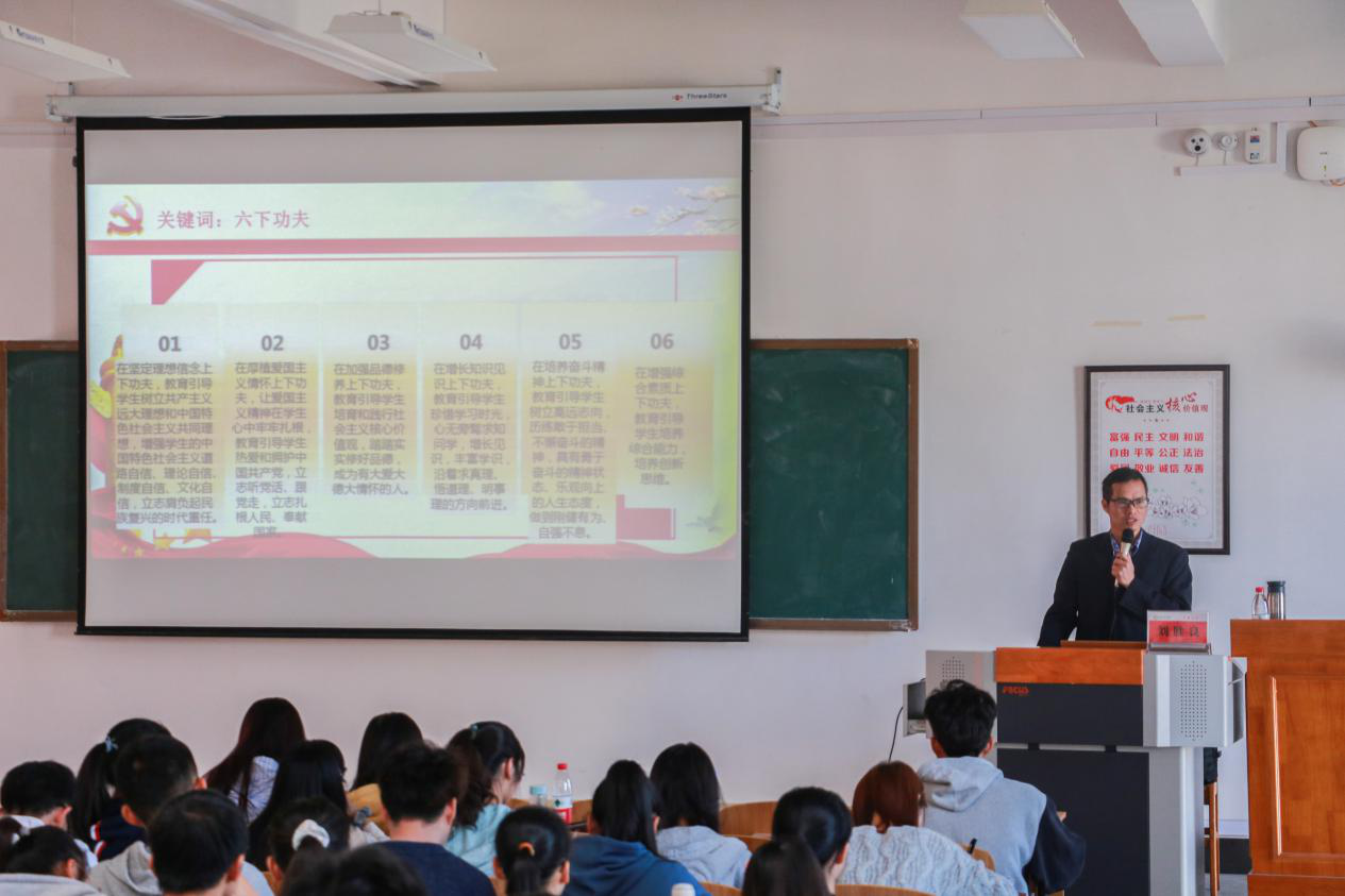 马献力从“立德、智育、体育、美育、劳动”五个方面出发,结合自身经历和时事政策,勉励同学们不忘初心,牢记使命。他向广大团员青年提出要求,一要提升思想道德水平,养成良好的文明习惯;二要掌握扎实过硬的本领,注重理论与实践结合;三要加强户外体育锻炼,练就健康强壮体格;四要树立远大理想,将个人命运和祖国的前途命运紧密相连;五要坚持德智体美劳全面发展,争做担当复兴时代大任的时代新人。
