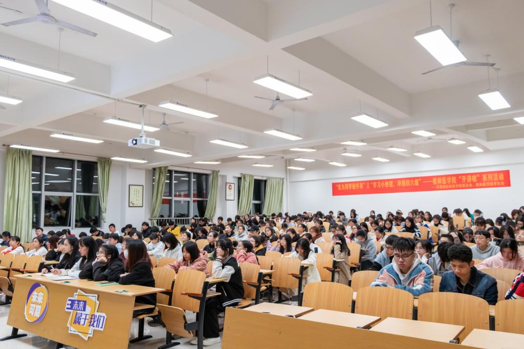 11月26日晚,我校学生会在临桂校区教学北楼203教室开展 “开讲啦”系列活动。大学外语部马凤益博士受邀开展“学习小妙招,冲刺四六级”专题讲座,与280余名同学分享备战英语四、六级的方法。