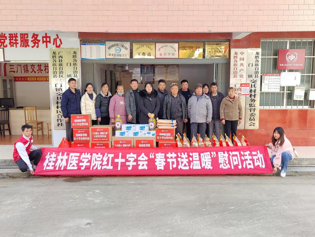 为大力弘扬“人道、博爱、奉献”的红十字精神,发挥红十字人道救助的作用,1月19日,桂林医学院红十字会15名师生前往桂林市龙胜县三门镇交其村针对部分困难户开展春节送温暖活动,校团委负责同志参加了慰问活动。