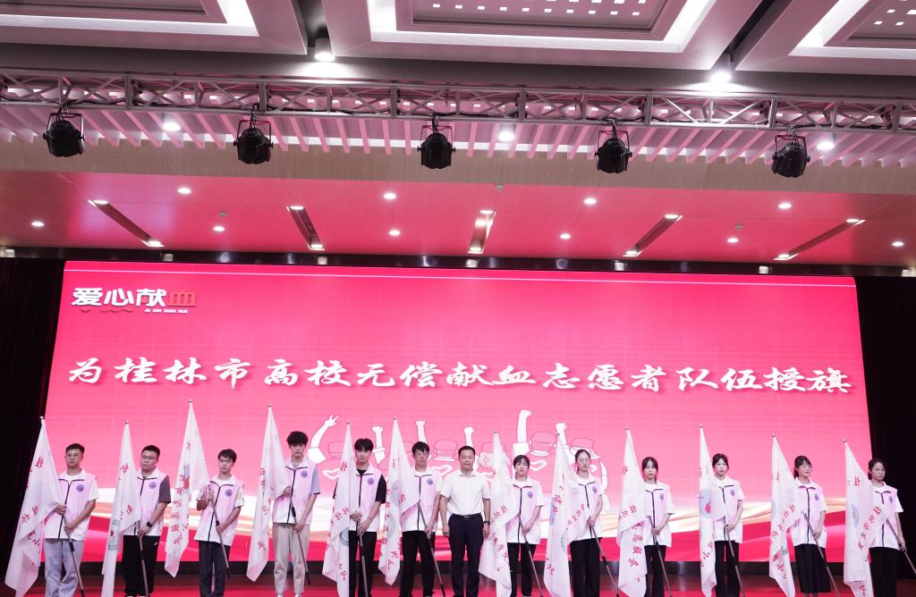 马献力在致辞中表示,桂林医学院一直以来高度重视无偿献血、志愿服务等公益活动。一方面学校将无偿献血作为精神文明建设和文明校园建设的重要内容,积极引导广大师生将“弘德善医”校训精神与“奉献、友爱、互助、进步”的志愿者精神以及“人道、博爱、奉献”的红十字精神结合起来,广泛宣传、组织师生参与无偿献血和造血干细胞捐献;另一方面,学校将无偿献血作为落实立德树人根本任务和推进“三全育人”的有效载体,充分发挥医学院校专业优势,探索把志愿服务纳入学校实践教学工作体系,使其成为医学生培养的有益路径,进一步增强实践育人实效。学校先后获评全国无偿献血促进奖(单位奖)、全国红十字模范单位。