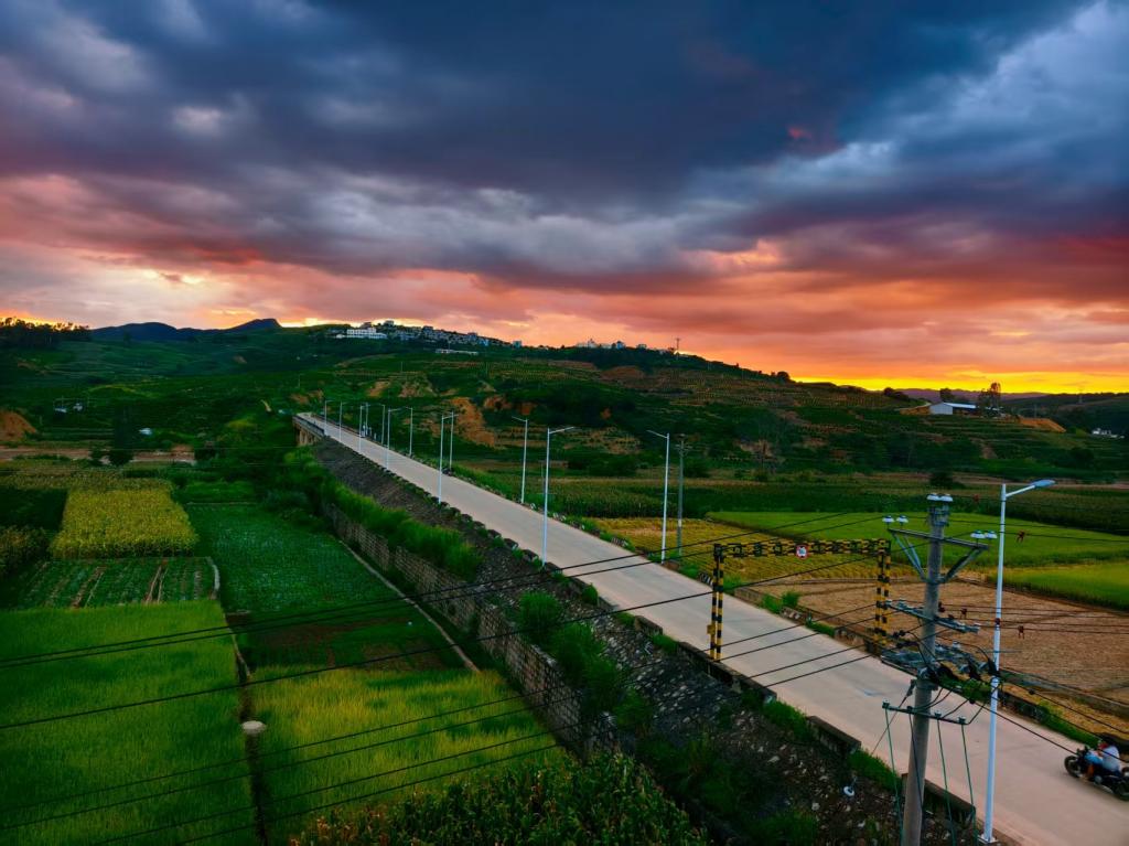 今年七月末,我搭乘九个小时的列车,穿越省界与江河,终于在傍晚时分抵达弥勒站。湿润的风迎面拂来,带着植物清冽的香气。站台之外,远山如黛、云霞低垂,像一幅未干的水墨画。
