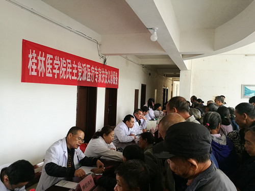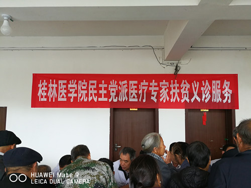 平熬村是桂林医学院在龙胜县6个定点扶贫的贫困村之一,贫困面广,贫困人口多。其中“因病致贫、因病返贫”是导致贫困的一个重要因素。“医疗扶贫”是学校倡导的重要扶贫方式之一,得到广大医务工作者积极支持和参与。我校各民主党派组织积极响应校党委的号召,在扶贫工作上与校党委同心同行,本次义诊活动,他们发挥优势,认真选派多学科专家参加,以实际行动助攻学校的“扶贫攻坚战”。