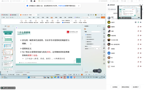 备课会上,戴静娱、赵春兰两位老师分别围绕“做情绪的舵手----情绪管理”、“羞答答的玫瑰静悄悄地开----恋爱与性”专题,从教学目标设定、教学重点难点把握、教学方法设计等方面进行了系统梳理与分享,进一步明确了专题教学思路。在研讨环节,与会教师结合实际教学经验展开深入交流,积极建言献策,现场讨论氛围热烈,取得了良好的研讨效果。