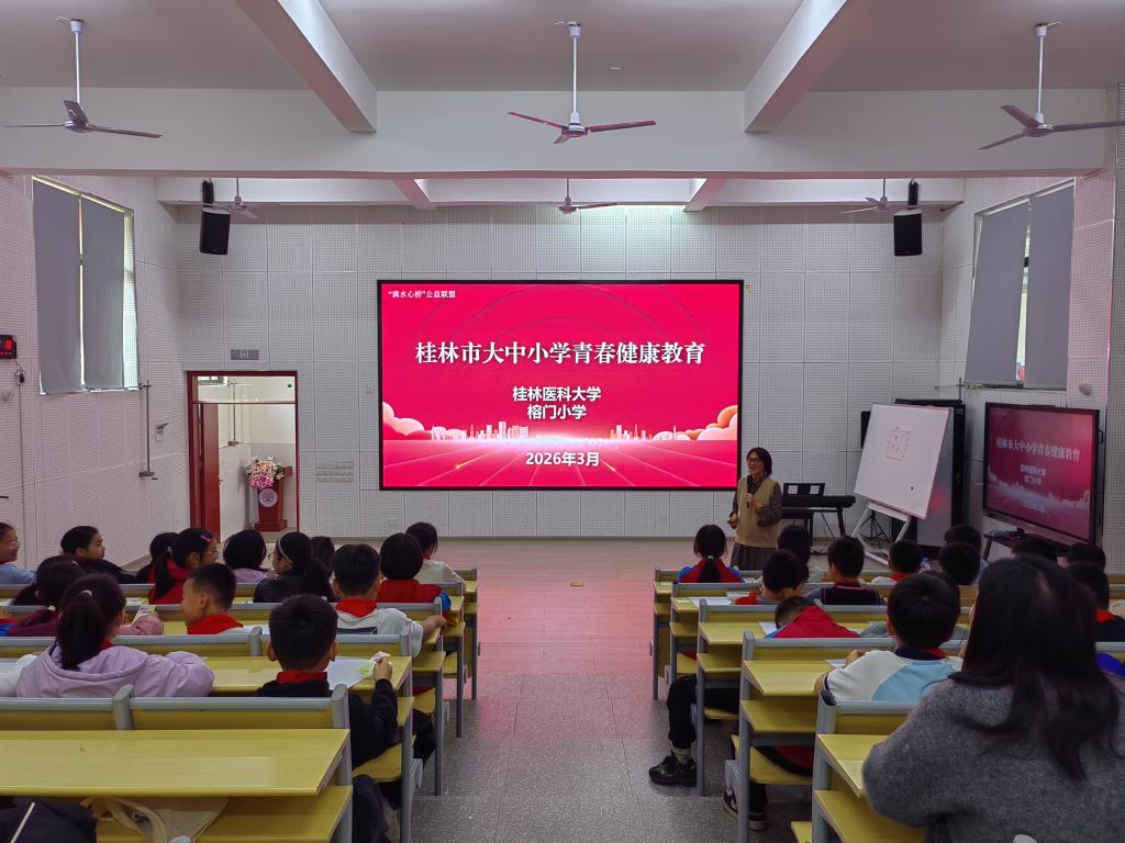 为深入贯彻教育部2026年“新春第一会”“健康第一”教育理念,落实全国两会关于加强心理健康教育、健全校家社协同育人机制的部署,发挥高校社会服务职能,持续推进大中小学心理健康教育一体化建设,3月31日下午,我校心理健康教育与咨询中心师生走进桂林市榕门小学,为五年级学生开展“春分山水秀,情绪自平衡”主题心理健康课。