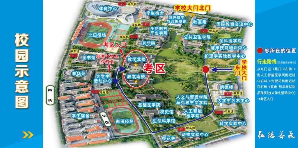 二、考生请提前60分钟以上到达考点。所有考生实施“2+1 ”安检( 2 次人工安检和 1 次智能安检门安检)和人脸识别,考生放置个人物品、安检等待耗时预计会变长,请考生提前做好出行规划,尽早抵达考点。考试开始15分钟后(8:45/14:15)考生不准进入考场参加当科考试。