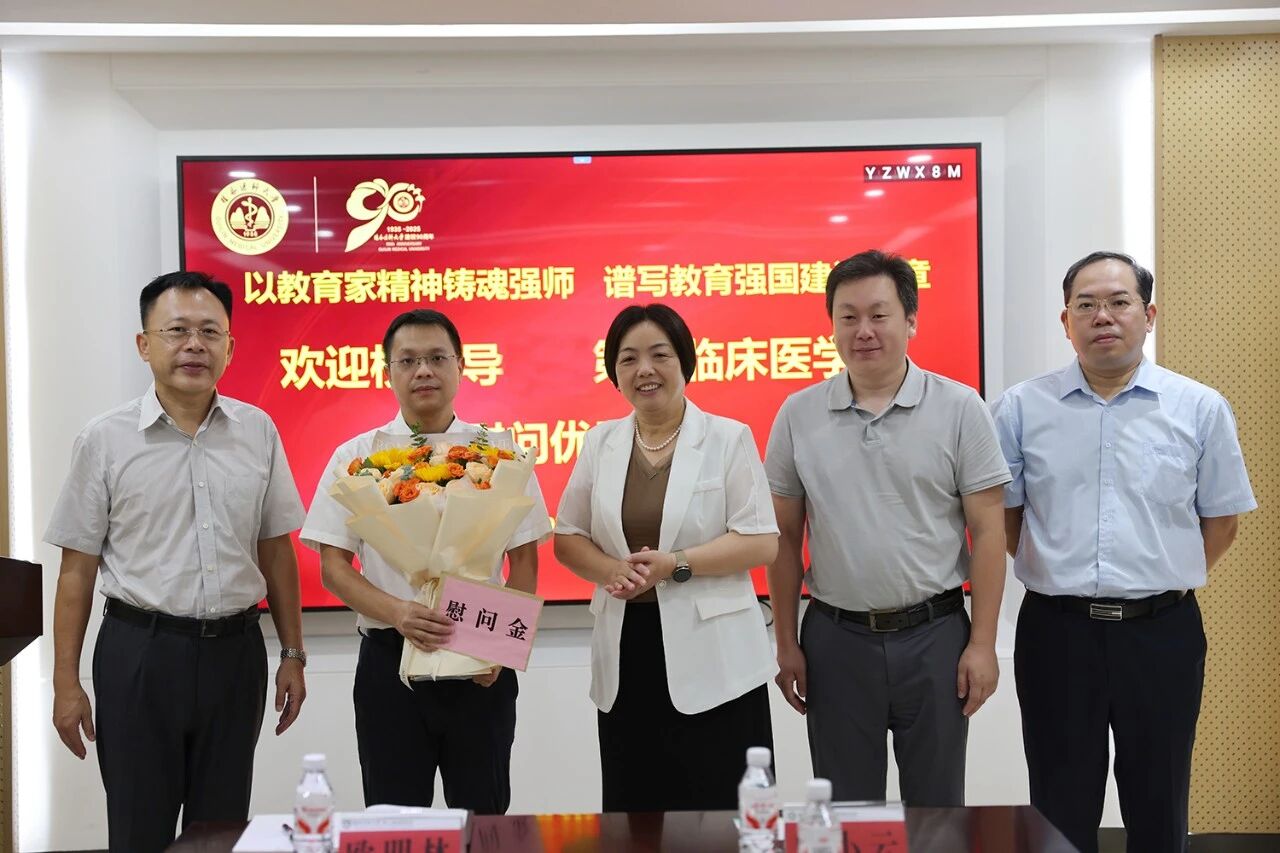 桂林医科大学教师工作部部长、人事处处长于鸿浩,我院党委书记葛波,党委副书记、院长蒋伟等领导班子成员及教研室老师代表出席了慰问活动。
